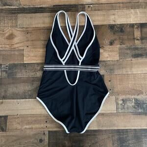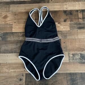 Athleta Gold Coast Solid One Piece Swimsuit Black White Size Large