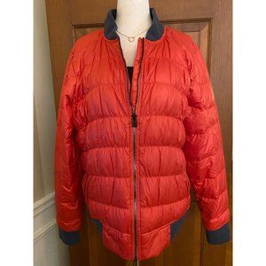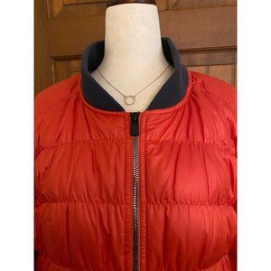 Athleta Goose Down Dobby Puffer Jacket Women S/M Red Full Zip Outdoor Warm