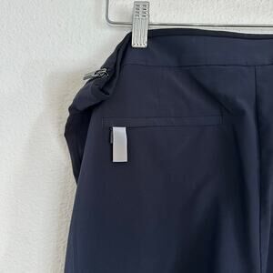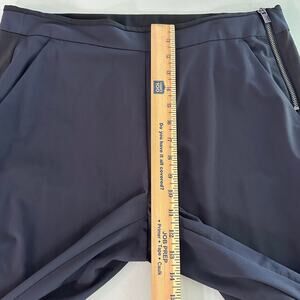 Athleta Gramercy Wide Leg Track Pants Blue Black Trim Size 12 Button Trouser
