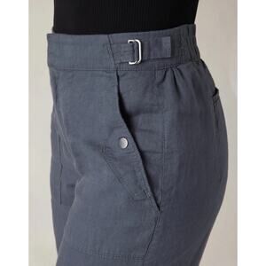 Stay cool and effortlessly chic in these Athleta Voyager shorts, crafted from breezy 100% linen. Designed in a versatile granite blue shade, these mid-rise shorts feature functional front pockets with button detail and a relaxed silhouette perfect for summer days, travel, or casual errands.