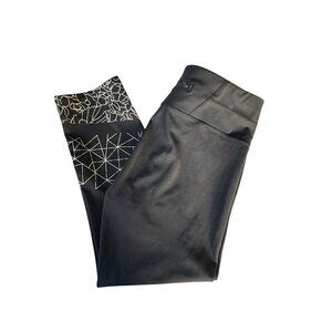Athleta Graphic Floral Sonar Capri Women’s Sz M Black Leggings Zip Pocket