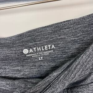 Athleta athletic skort in women’s size LT. Soft heathered gray performance fabric with built-in shorts, side pockets, a zip pocket, and an adjustable drawstring waistband — perfect for workouts, walking, or casual wear.