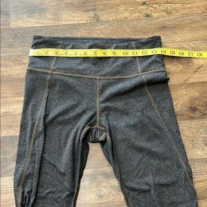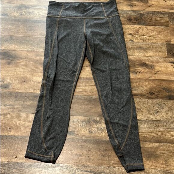Athleta Comfortable gray athletic leggings with stylish stitching. Perfect for workouts or casual wear.