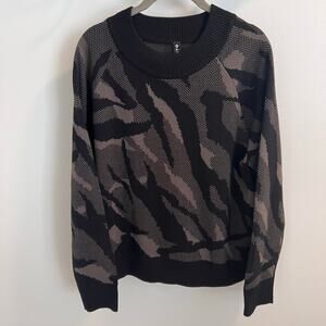 Athleta Gray Camouflage Jacquard Crew Sweater Size S