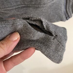 Good Used Condition- thumb hole on one sleeve is missing closure stitching on part of the thumbhole - overall signs of wear, but lots of life left!