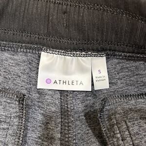 Athleta Gray Heather Jogger Sweatpants Zippered Pockets and ankles. Black contrasting trim. Polyester Spandex. Size Small. Measurements taken laying flat: -Waist: 15" -Rise: 10" -Inseam: 29" SMOKE FREE PET FREE HOME!