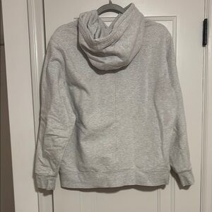 Comfortable gray hoodie with front pocket and drawstring hood. Great condition! Side zipper pocket