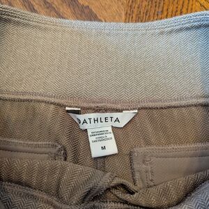 Experience the perfect blend of style and comfort with Athleta's gray Brooklyn mid rise pants. Zipper at ankles. Herringbone design. Taupe color.