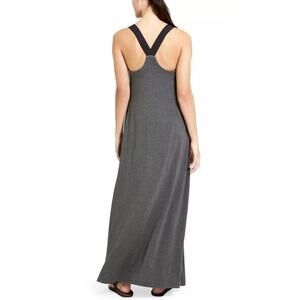 Elegant gray maxi dress. Sleeveless design. Perfect for casual outings.