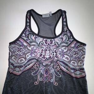 Athleta Gray Purple Paisley Racerback Tankini Swim Top Size Medium