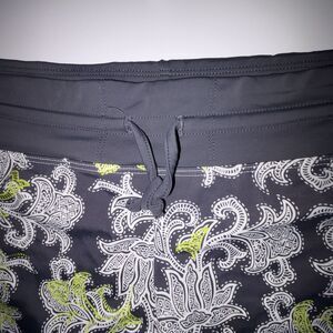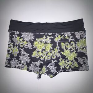 Athleta Gray & White Floral Swim Shorts Swimsuit Bottom Size Large Back Pocket