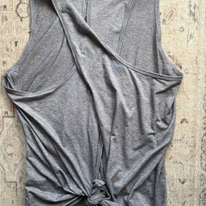 Stylish and versatile gray tank top perfect for any casual occasion. Soft fabric ensures comfort throughout the day. Cute wrap and tie detail in the back.