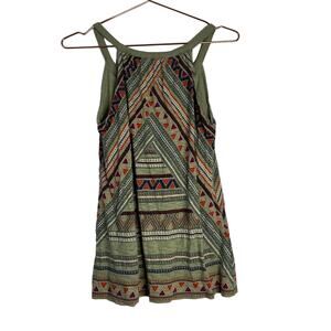 Athleta Green Aztec Print Shelf Bra V-Neck Tank Top 221940