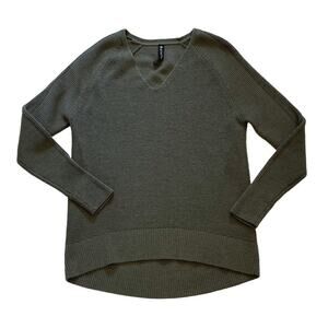 Athleta Green Hanover V-Neck Merino Wool Blend Long Sleeve Sweater Oversized XXS