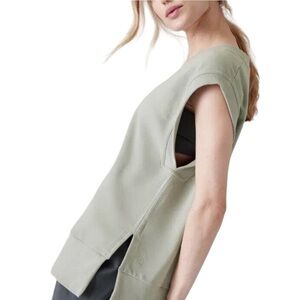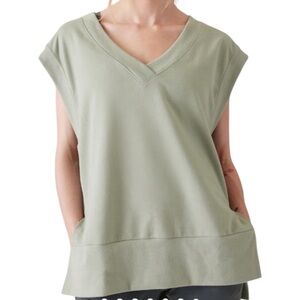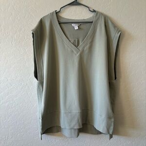 Athleta Green Retroterry V-Neck Sweatshirt Tee Sleeveless Loose Fit Size 2X