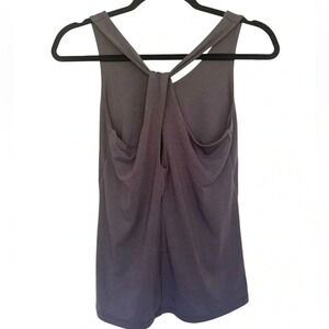 Athleta Grey Bells Essence V Neck Keyhole Cross Back Tank Top