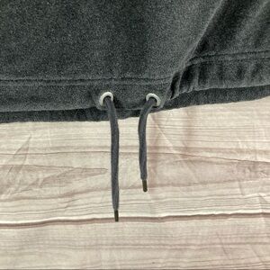 In excellent used condition no rips, tears or stains. Velour fabric pullover sweatshirt with long sleeves, front kangaroo pocket, adjustable tie at the waist, cowl tunnel neckline, super soft and cozy velvet material. Relaxed fit.