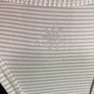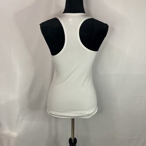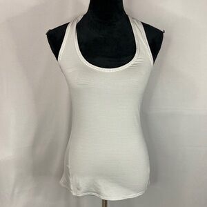 Very Fitted Tank Top, No care tag (was cut out), longer hem in the back for a little extra coverage.