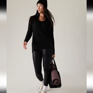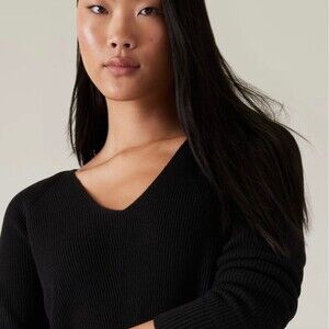 Athleta HANOVER REFINED V-NECK SWEATER black washable merino wool M Medium