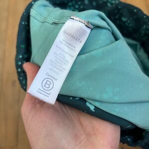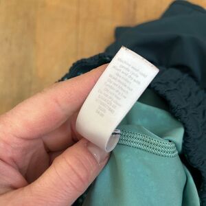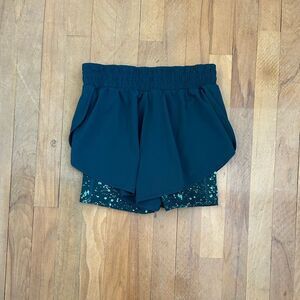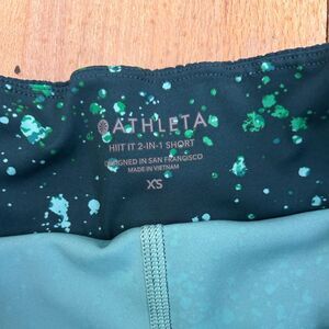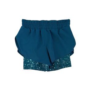 •HIIT IT 2-in-1 short, biker shorts under running shorts, teal blue green dot pattern