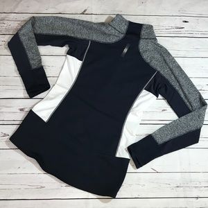 Very cute Athleta halfzip pullover sweater size M. Has some stains on the White side panels see pictures. Has some stains on the left side of the arm, but that's it other than that good condition. Please feel free to ask questions. Accepting reasonable offers. C105