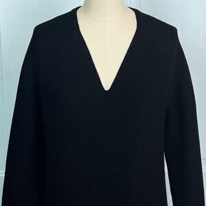 Athleta Hanover Refined V-Neck Sweater Merino Wool Blend Relaxed Fit Black Sz XS