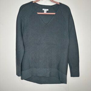 Athleta Hanover Sweater Womens Medium V-Neck Gray Knit Merino Wool Blend Relaxed