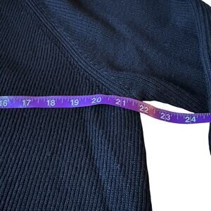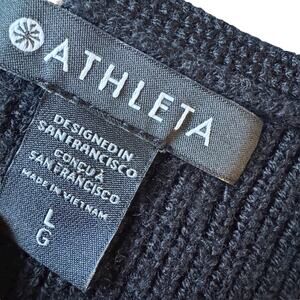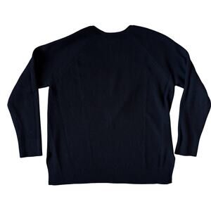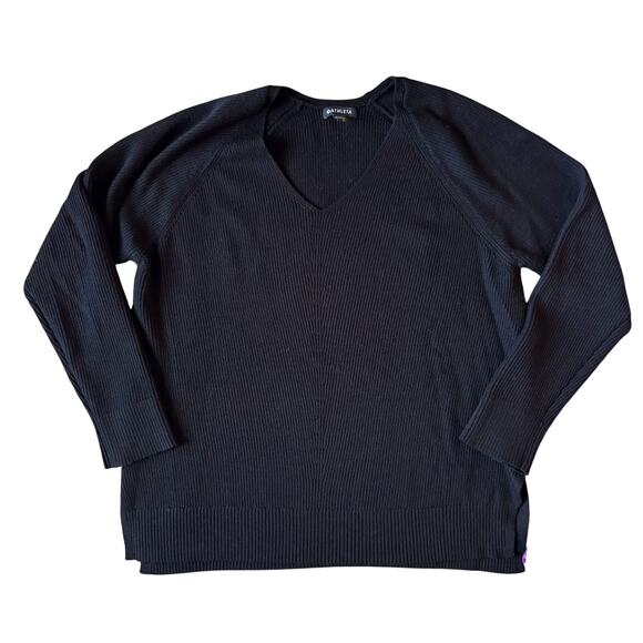Athleta Hanover V Neck Knit Ribbed Sweater Women Large Black Merino wool blend