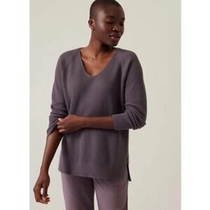 Athleta Hanover V-Neck Sweater Fine Merino Wool Dusk Violet Size Medium