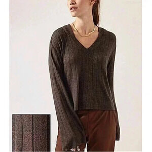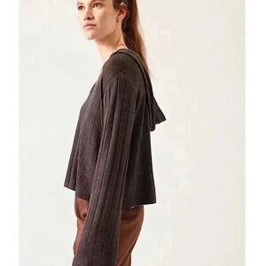 Athleta Harmony Brown Pose Cropped Sweater w/ Hoodie V Neck Ribbed Knit Like New