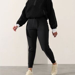Athleta Headlands Hybrid Trek Athletic Jogger in Black Stretch Jersey Nylon
