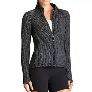 Athleta Heartbeat Hope Full Zip Jacket Herringbone Black Grey Size Medium