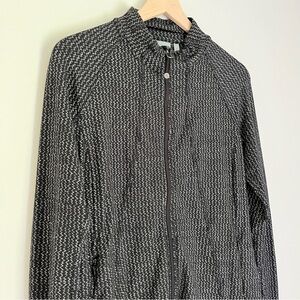Athleta women’s heartbeat hope full zip jacket in a black and grey herringbone pattern. Size medium.