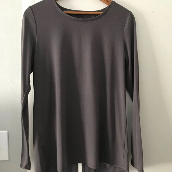 Athleta Heather Gray Monarch Ribbed Stretch Split-Tie Back Shirt Top Size Small