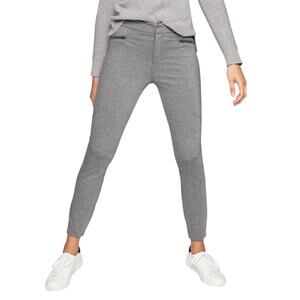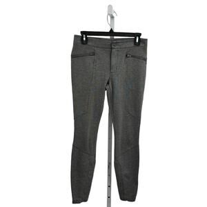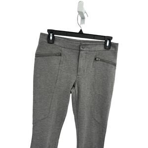 Athleta heather gray ponte moto style legging pants. Ponte flex streamlining fabric with 4 way stretch and a structured fit. Wrinkle resistant. 2 Front zipper pockets. 2 back pockets. Zipper and button closure. Moto style, skinny leg. Has stretch. Rayon, nylon, spandex. Machine wash. 868912. In preowned condition.