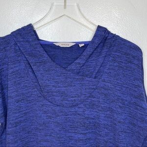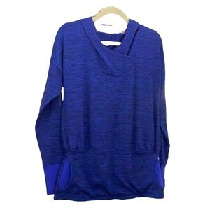 Athleta Heathered Blue Hooded Top Kangaroo Pocket Cross Neck Drop Waist Size S