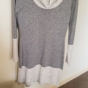 Mock Neck, Long Sleeve, Light Gray and Heathered Gray. EUC, only worn a couple times. Perfect with high black boots or shooties :)… Measurements are approximately: Sleeves: 24", 25" top of shoulder to bottom of dress, chest about: 18 - 18 1/2". Really nice, sexy dress!!!!