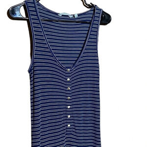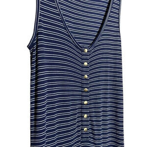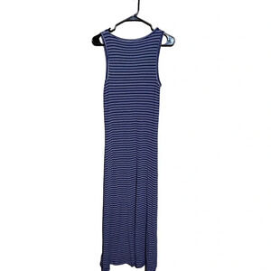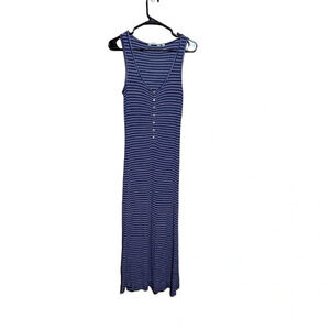 Athleta Hermosa Henley Dress Size Medium Midi Length Navy Blue White Stripe Maxi