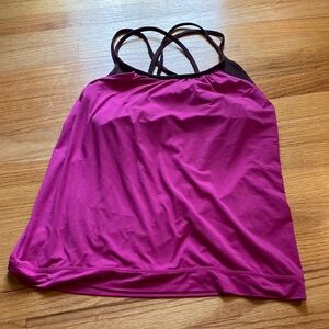 Athleta Hidden Agenda No Limits Built in Bra Racerback Tank Pink Deep Burgundy M