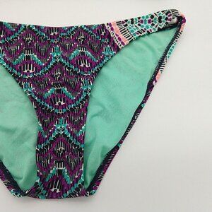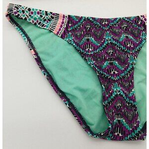 Athleta High Cut Bikini Bottom Size M Purple Turquoise Boho Print Cheeky