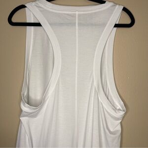 This sleek white tank top from Athleta showcases an asymmetrical design with a stylish high-low hemline. Crafted from lightweight fabric, it offers a relaxed fit that drapes elegantly for versatile styling.