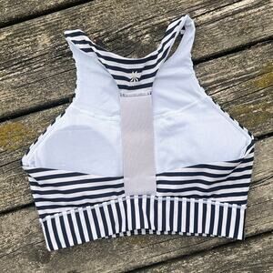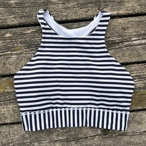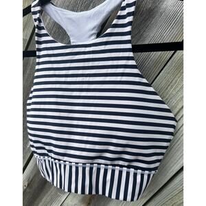Athleta High Moon Sports Bra, Navy Stripes Size Small