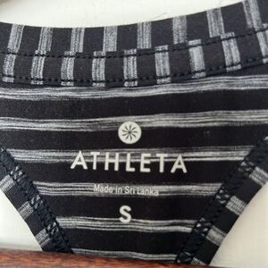 Athleta High Neck Heather Stripe Chi Tank Black/Bright White Size Small
