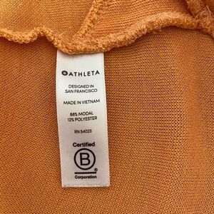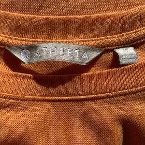 Bright orange knit top by Athleta. Ideal for casual outings. Very thin sweatshirt material. Crossover detail at bottom hem.