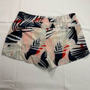 Athleta High Waist Pink and Blue Shorts with Tropical Print