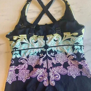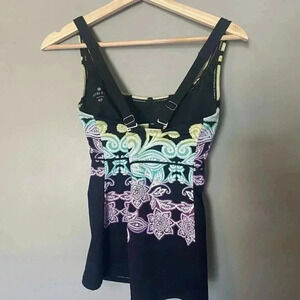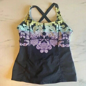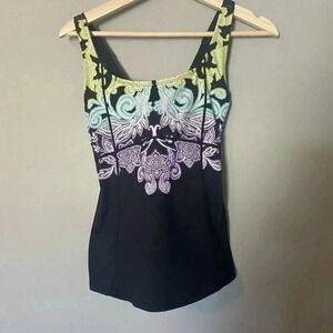 Athleta Hilo Shoreside Black Paisley Tankini Top Size Medium T Swim Built In Bra
