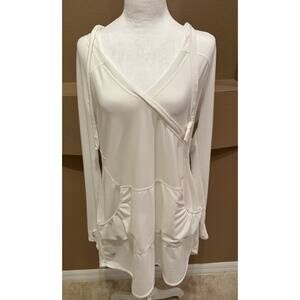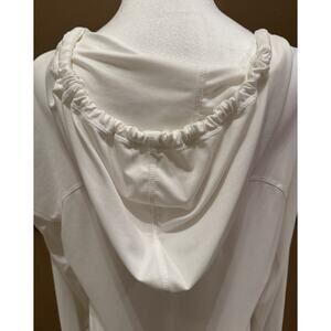 Athleta Hoodie Tunic Dress White Front Pockets Thumb Holes Sweatshirt Size L