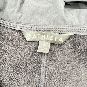 The solid pattern and athletic fit, along with the outdoor, logo, and sports themes, make this sweatshirt a stylish addition to any activewear collection. It also features convenient pockets for storage. This women's size small sweatshirt is from Athleta, a brand known for its quality and performance.