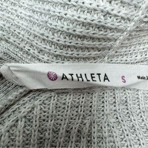 Athleta Horizon Gray Ribbed Long Cardigan Sweater Women’s Small Open Front. Armpit to armpit 19”, shoulder to hem 29” front, 32” back. Side pockets
