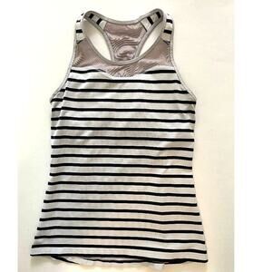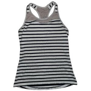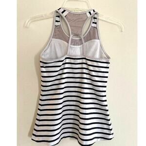 Athleta Hyper Stripe Sports Performance Bra Tank Top Off White & Navy Size XS